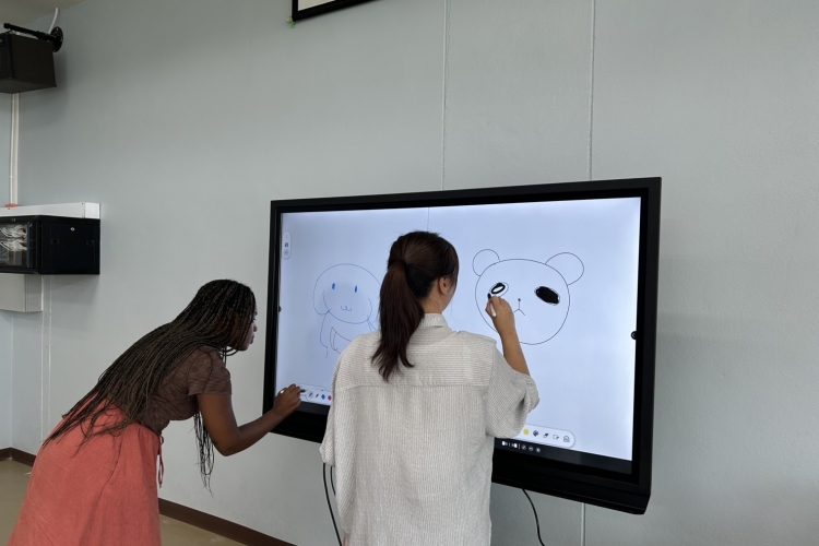 On May 16, 2025, the Educational Technology Division performed a training session about the usage of the Promethean ActivPanel 9 Interactive Display for teachers at Satit School of Suratthani Rajabhat University. The training covered various features, including mathematical tools on the whiteboard application, creating a random name spinner, and sharing screens from smartphones and tablets to the interactive panel, to enhance teaching convenience and efficiency. Additionally, the session included training on ActivInspire Software for creating interactive teaching materials that promote engagement between teachers and students, helping to foster a dynamic learning environment in the classroom.