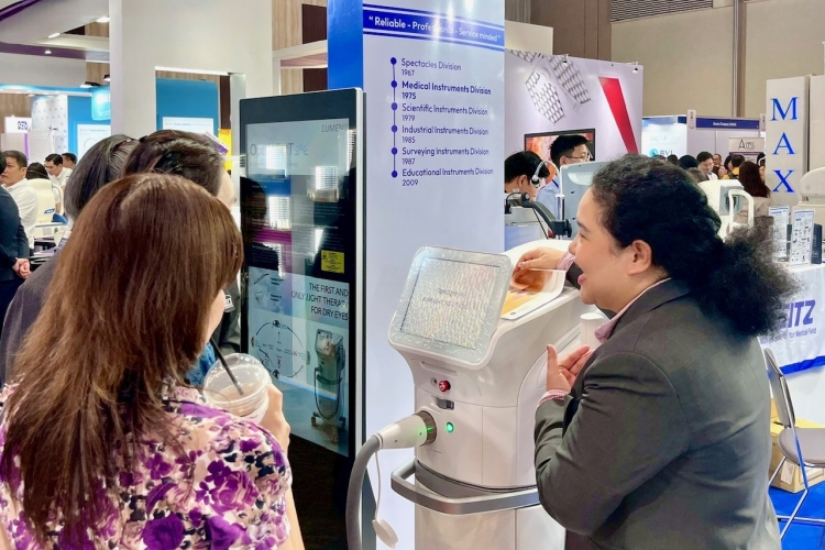 On July 14-16, 2025, the Medical Instruments Division participated in the 53rd Royal College of Ophthalmologists of Thailand: RCOPT Academic Conference at the Centara Grand Central World, Bangkok. The Medical Instruments Division presented A.R.C. Ophthalmic Laser from Germany, TAKAGI Operating Microscope from Japan, LUMENIS Treatment IPL from Israel, VISIONIX OCT from France, and NIKON Diagnosis from Japan, and so forth. The presentation of medical devices had attracted a lot of attention from ophthalmologists.