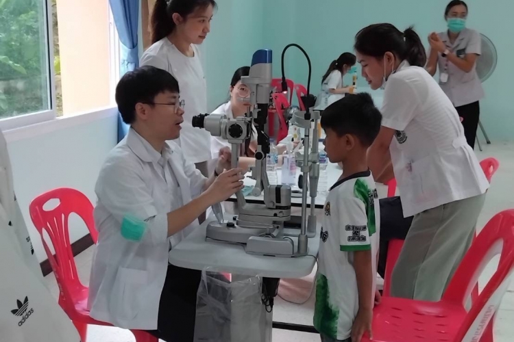 On July 25, 2025, the Medical Instruments Division held social welfare activities in collaboration with the Princess Srinagarindra Volunteer Medical Unit (P.S.V.) at Nan Ngio Witthaya San School, Khon Kaen Province. The Medical Instruments Division brought RetinaStation, Slit Lamp, and Optochek Plus to participate in social welfare activities. In this event, people from the community and nearby areas showed interest and came to have their eyes checked.