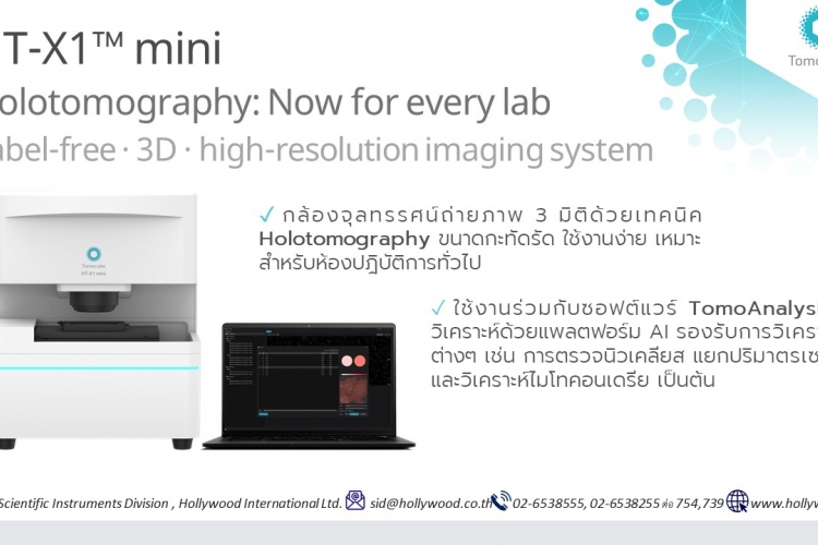 The HT-X1™ Mini brings advanced, user-friendly 3D holotomography to everyday laboratory workflows in a compact format. It delivers high-resolution, label-free imaging of live cells, eliminating the need for fluorescent dyes. Fully compatible with TomoAnalysis™, an AI-powered analysis platform, it supports automated workflows such as nuclei detection, cell volume segmentation, and mitochondria analysis, thereby enhancing accuracy, reproducibility, and collaborative research. Moreover, the system accommodates a wide variety of biological sample types.