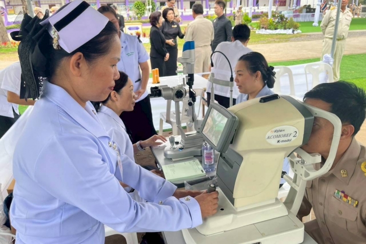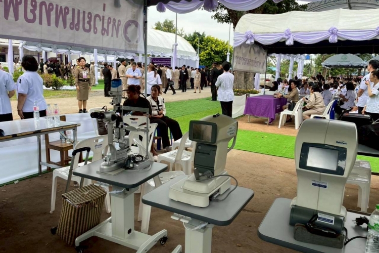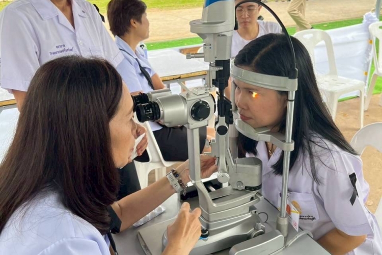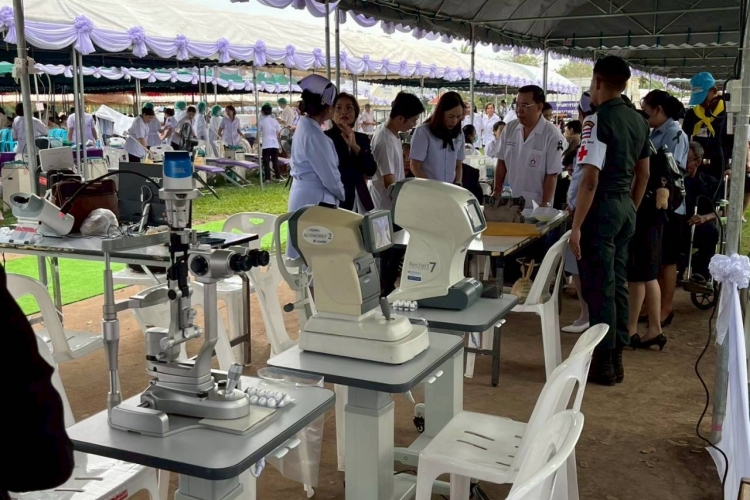 On November 18, 2025, the Udon Thani Provincial Public Health Office, in collaboration with Srinagarind Hospital and Kumpawapi Hospital at Ban Song Phoe Dong Sum Sib School in Soe Phloe, Kumpawapi, Udon Thani, implemented social welfare activities. In this regard, the Medical Instruments Division provided a Japanese-made LED Slit Lamp, an Automatic Refractor, and a Tonometer; the assessment was conducted in a mobile unit. In this event, the staff and the community showed interest and came to have their eyes checked.