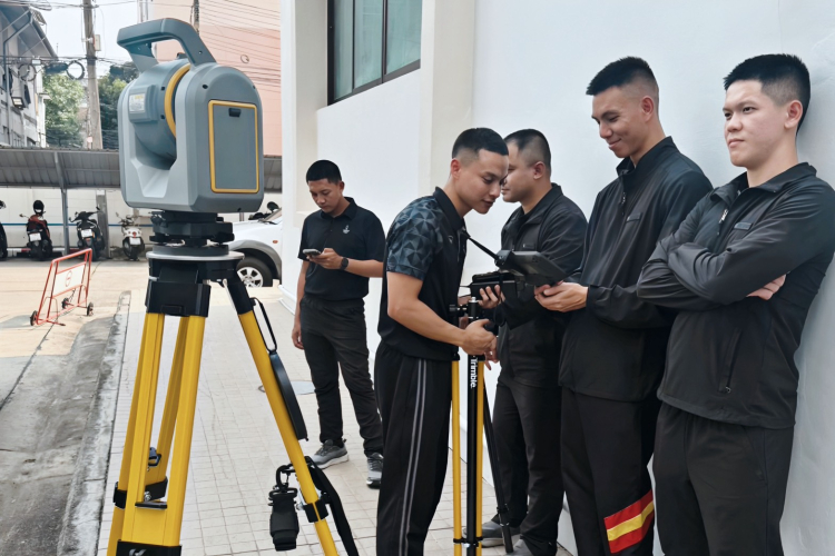 As part of the handover, the division provided comprehensive training on the functionalities of each device. Officials from the Royal Thai Survey Department were given the opportunity to practice using the equipment in actual fieldwork scenarios. Afterward, the collected data was processed and verified for accuracy using the Trimble Business Center (TBC) Software. The team also provided detailed guidance on the proper storage and maintenance of the equipment. Overall, the officials from the Royal Thai Survey Department expressed high satisfaction with the training, gaining valuable knowledge and significantly enhancing their understanding of how to effectively operate Trimble equipment.