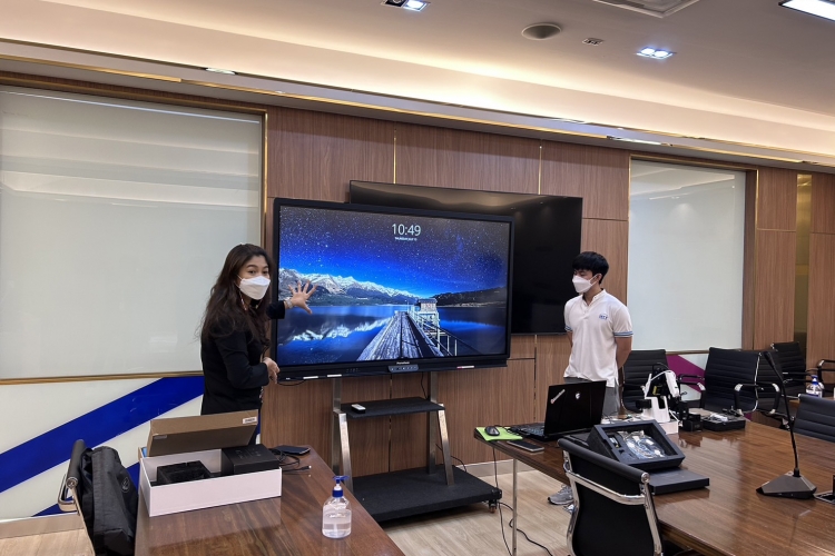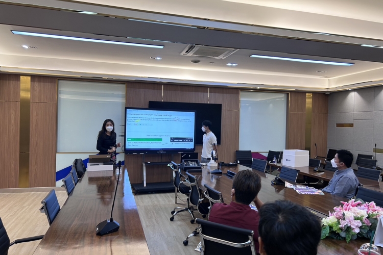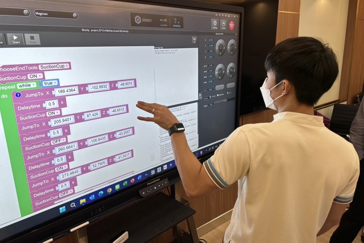 To encourage the use of teaching tools by teachers and head of science subject groups at Patumwan Demonstration School, Srinakharinwirot University the educational technology division demonstrated the DOBOT, an intelligent robotic arm and trained the use of ActivPanel9 in features such as a whiteboard app, screen sharing from smartphones or tablets to ActivPanel9, and other apps on July 13, 2023.