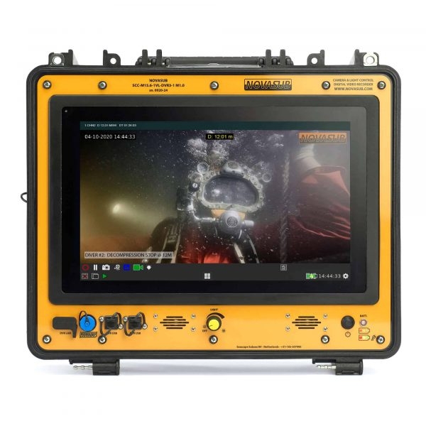 The THALLASA-C1 is a video and light control system that runs on the proprietary DVR3 software from NOVASUB. An innovative piece of hardware integrated into a rugged case with high-grade connectors that supports up to two channels. It is equipped with a 15.6" daylight touchscreen to make video control as easy as possible. It makes this system the centerpiece of any surface-supplied equipment system and an indispensable piece of hardware. It has inputs for video and light, as well as communications from a communication system and depth data from a dive panel.