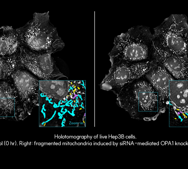 The HT-X1™ Mini brings advanced, user-friendly 3D holotomography to everyday laboratory workflows in a compact format. It delivers high-resolution, label-free imaging of live cells, eliminating the need for fluorescent dyes. Fully compatible with TomoAnalysis™, an AI-powered analysis platform, it supports automated workflows such as nuclei detection, cell volume segmentation, and mitochondria analysis, thereby enhancing accuracy, reproducibility, and collaborative research. Moreover, the system accommodates a wide variety of biological sample types.