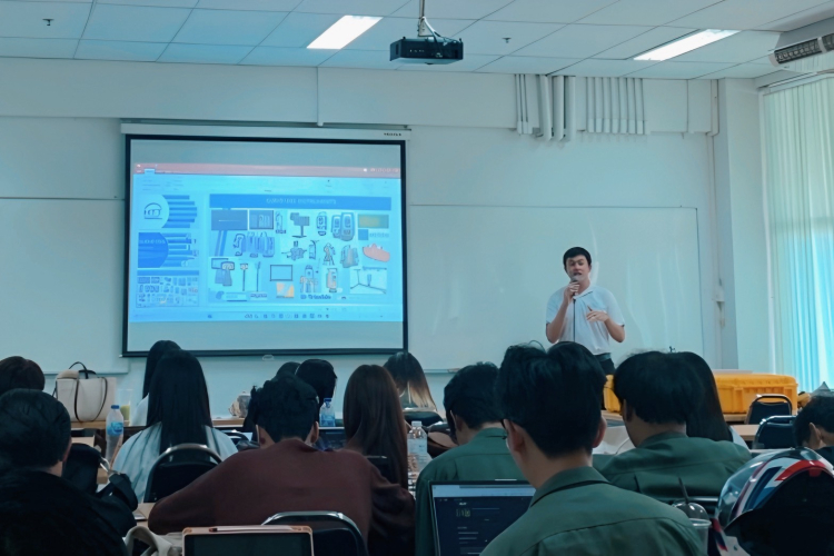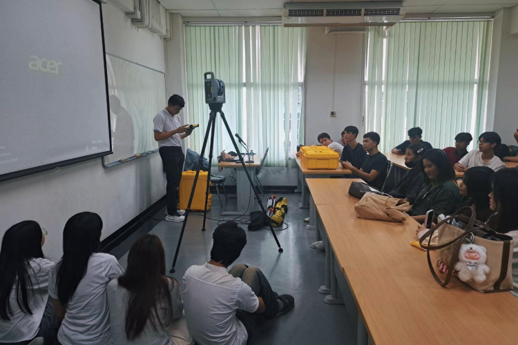 เมื่อวันที่ 18 กุมภาพันธ์ 2569 ที่ผ่านมา ทางแผนกเครื่องมือสำรวจ ได้รับเชิญจากคณะวิศวกรรมศาสตร์ สาขาวิศวกรรมสำรวจและสารสนเทศภูมิศาสตร์ มหาวิทยาลัยเกษตรศาสตร์ วิทยาเขตบางเขน กรุงเทพฯ ให้ไปบรรยายและสาธิตเกี่ยวกับการใช้งานเครื่องรับสัญญาณดาวเทียม GNSS Trimble R980 ร่วมกับเครื่องควบคุม Trimble TSC7 โดยให้นิสิตได้ทดลองรังวัดแบบ RTK (Real Time Kinematic) พร้อมกับใช้ฟังก์ชั่นต่างๆของโปรแกรม Trimble Access ในการควบคุมการทำงานภาคสนาม นอกจากนี้ทางแผนกยังได้สาธิตการใช้งานเครื่อง Trimble 3D Laser Scanner รุ่น X9 ในการสแกนเก็บค่าจุดต่างๆเพิ่มเติม โดยได้รับความสนใจจากนิสิตเป็นอย่างมาก