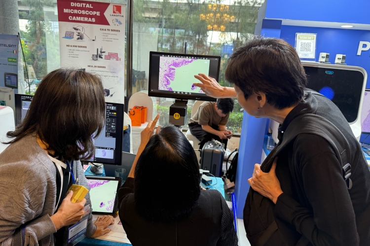 Our division presented information and showcased a wide range of scientific instruments that can be applied to pathology-related research for medical technologists, cytologists, scientists, and interested attendees. Featured equipment included the latest Eclipse Ui Digital Microscope from Nikon, Japan, ideal for medical and pathology laboratories, as well as the Eclipse Ci-L Plus Microscope for Advanced Pathology applications connected with an All-in-One Imaging System with a Built-in Display from Lanoptik, China, designed to support and facilitate laboratory workflows.