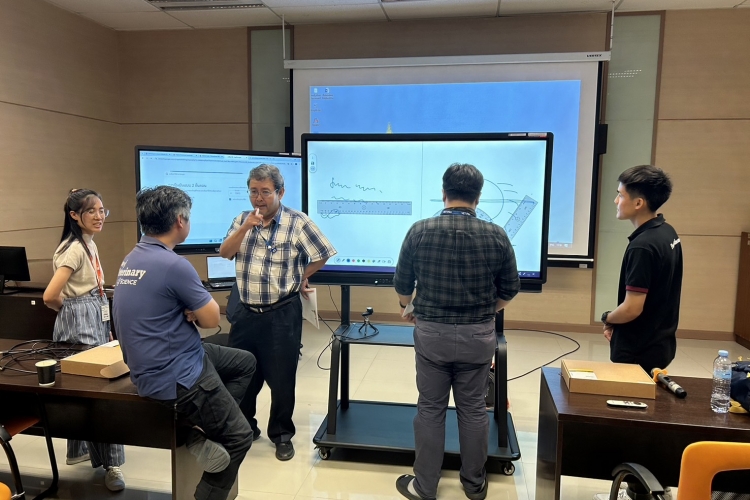 On September 6, 2024, the Educational Technology Division performed a training session about the usage of Promethean ActivPanel Model V9 interactive display for teachers of the Faculty of Veterinary Sciences, Prince of Songkla University by training in the use of various features such as teaching tools in the whiteboard applications, creating a random spinner, and screen sharing from smartphones and tablets to ActivPanel that helps teaching more convenient and faster. There is also training about ActivInspire Software for creating interactive teaching materials for teachers and students. To stimulate learning and enhance the atmosphere in the classroom.