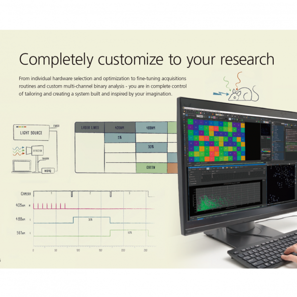 Dedicated interface for Nikon's confocal and multiphoton systems, providing easy instrument setup and streamlined operation. Incorporates many of the features of NIS-Elements AR for advanced acquisition, image processing, analysis, visualization and data sharing capability.
