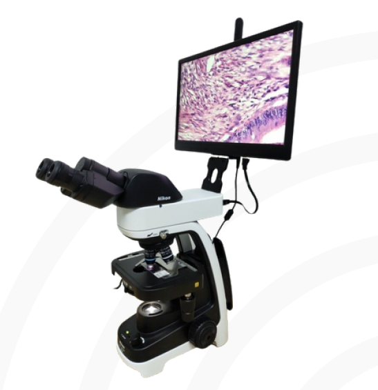With the specially designed 5G WiFi module, the optical microscope, digital camera, PC, smart mobile devices, and other equipment are skillfully integrated into a complete digital interactive system.