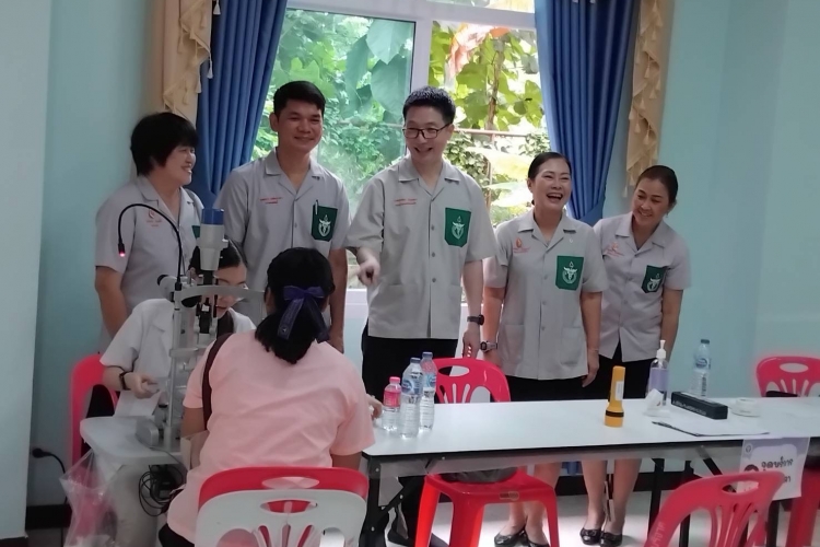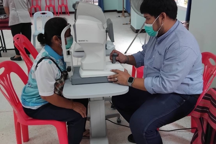On July 25, 2025, the Medical Instruments Division held social welfare activities in collaboration with the Princess Srinagarindra Volunteer Medical Unit (P.S.V.) at Nan Ngio Witthaya San School, Khon Kaen Province. The Medical Instruments Division brought RetinaStation, Slit Lamp, and Optochek Plus to participate in social welfare activities. In this event, people from the community and nearby areas showed interest and came to have their eyes checked.