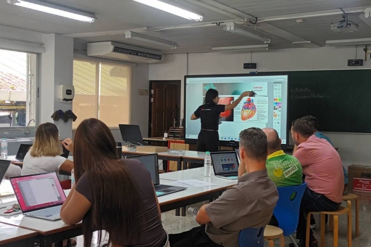 On August 4–6, 2025, the Educational Technology Division installed and trained Ruamrudee International School – Swiss Section teachers on the use of the Promethean ActivPanel V9 Interactive Display. The training ensured teachers used the equipment correctly and effectively, allowing them to maximize its benefits in teaching, lesson preparation, and the creation of engaging instructional materials. The ActivPanel V9 enhances the classroom atmosphere, encourages active student participation, and fosters long-term learning development.