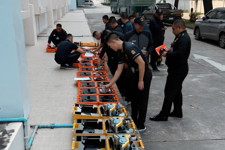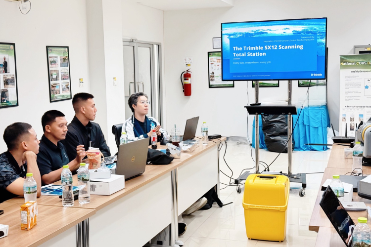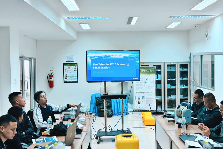 As part of the handover, the division provided comprehensive training on the functionalities of each device. Officials from the Royal Thai Survey Department were given the opportunity to practice using the equipment in actual fieldwork scenarios. Afterward, the collected data was processed and verified for accuracy using the Trimble Business Center (TBC) Software. The team also provided detailed guidance on the proper storage and maintenance of the equipment. Overall, the officials from the Royal Thai Survey Department expressed high satisfaction with the training, gaining valuable knowledge and significantly enhancing their understanding of how to effectively operate Trimble equipment.