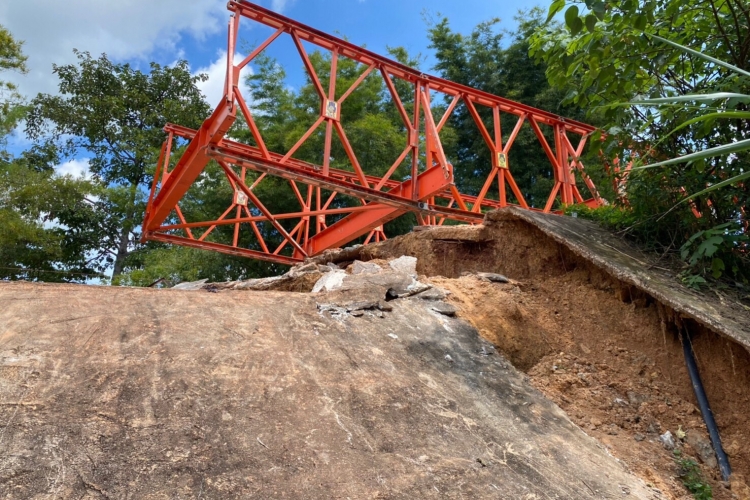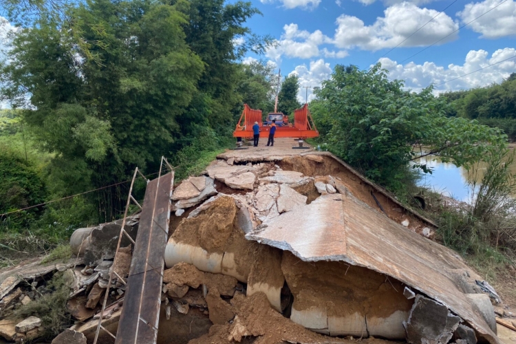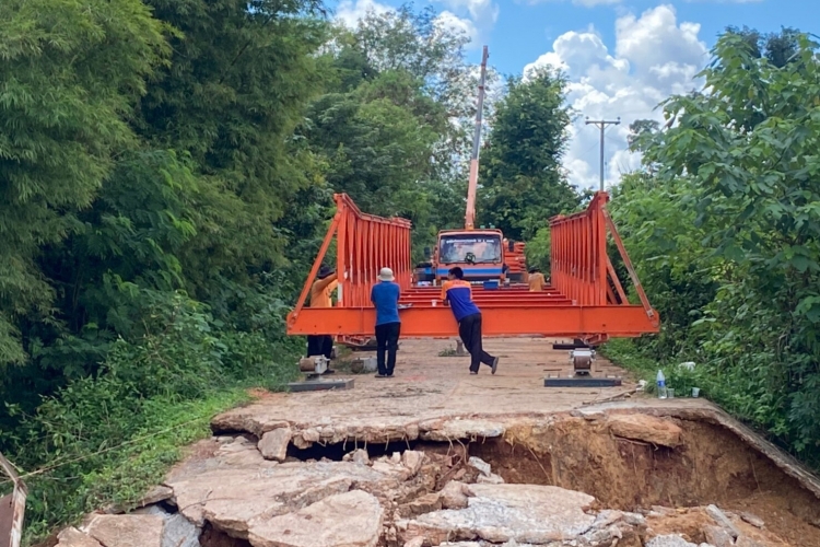 The Disaster prevention and Mitigation center No.6, KhonKaen ,reported an incident that the road collapsed due to the heavy rains and strong currents of floods in the area of Ban Lae On Son, Sap Si Thong, Muang, Chaiyaphum Province.  On the 25th of September, our staff had surveyed the area, and on the 29th of September, we installed an emergency bridge (Bailey-Bridge) to help the people in distress so they could travel across the area.