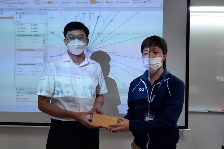 Then we moved inside the classroom to begin the second session. Our lecturer showed how to transfer, process and compare the collected data from session one to make the students see workflow from field to office solution. Furthermore, we had a little prize for students who win the game we provided as one of our thankful feeling.