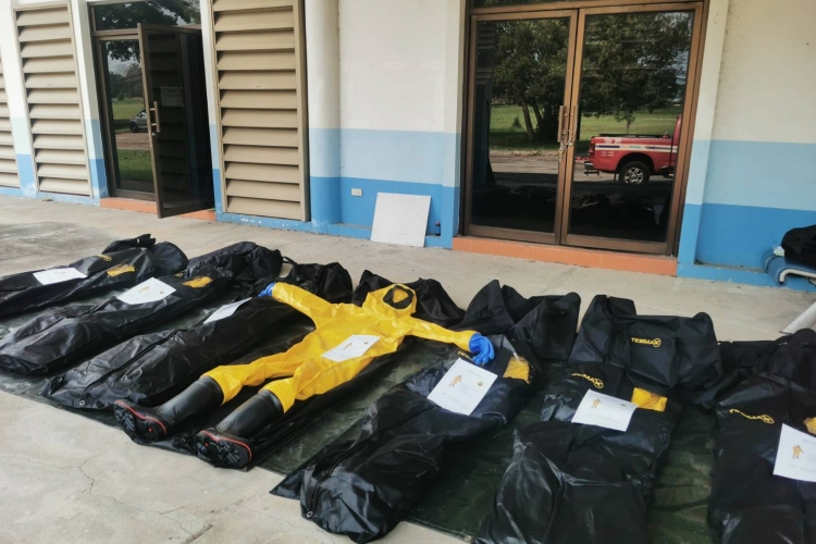 Golbal Instech Ltd. Had delivered 8 Sets of the TESIMAX“Level B” chemical protection suite, model : GS3 PORYLAN-L.Comprise with the suit, gloves, and boots to the Airport of Thailand PCL (AOT) on 7 April 2022