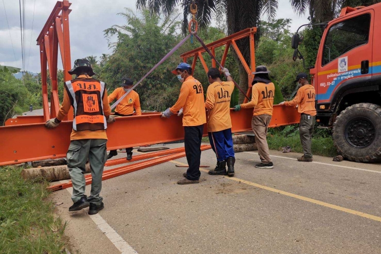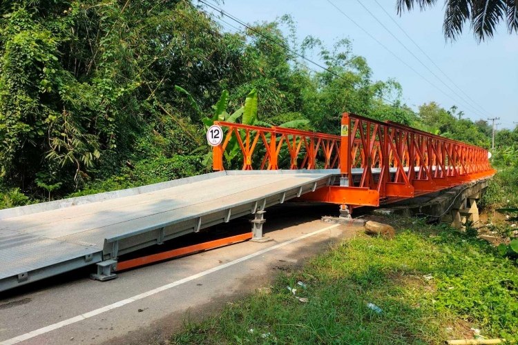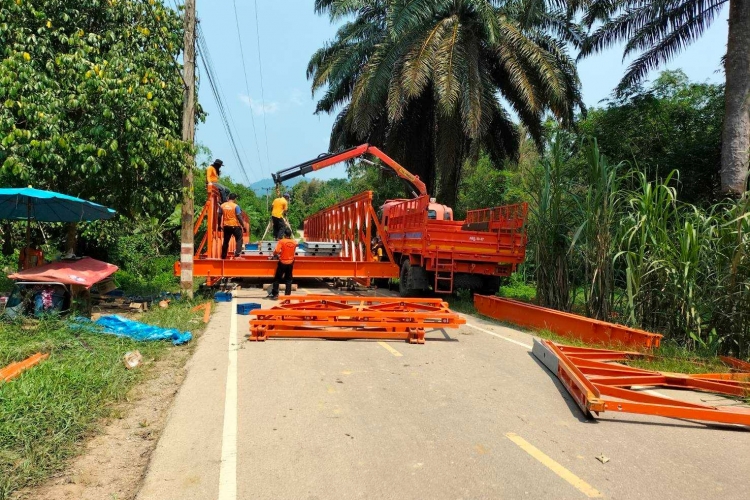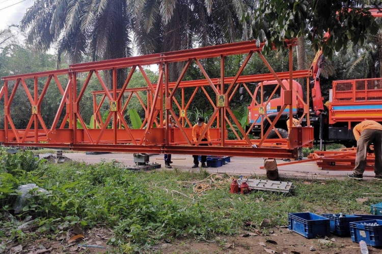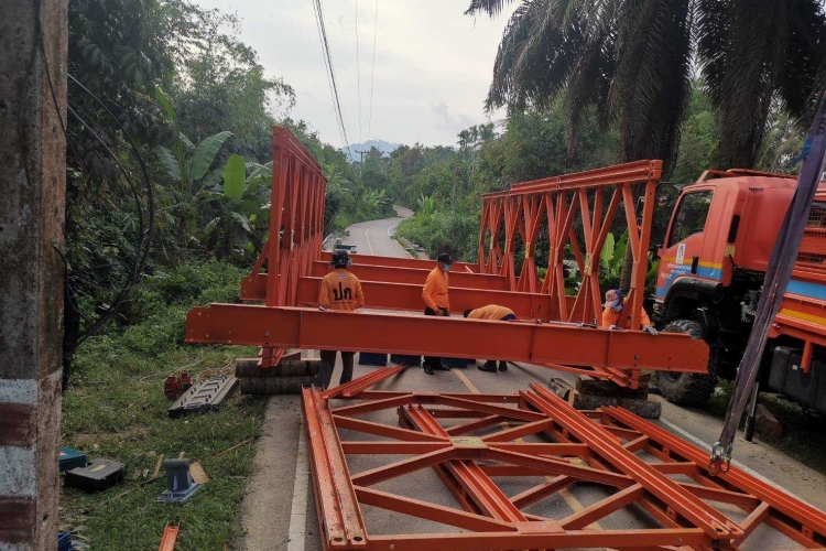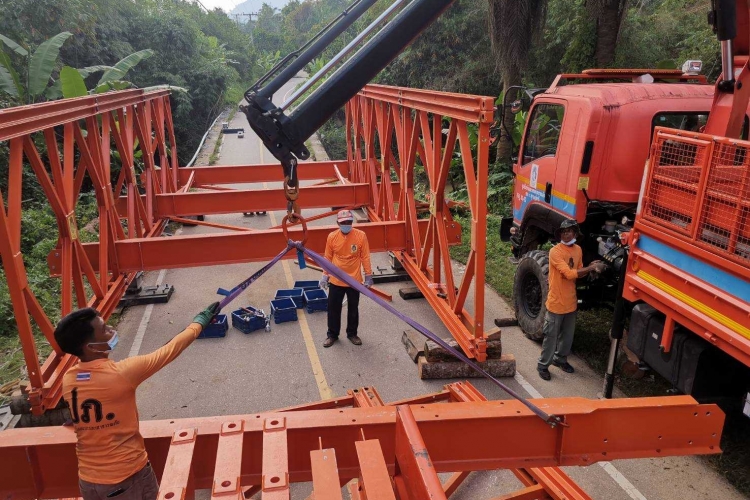 During 7-12 April 2022, the bailey bridge was installed at Moo 7, Pungwan sub-district, Patao district, Chumphon. The installation was done by the Disaster prevention and Mitigation Center No. 11 (Surat Thani)