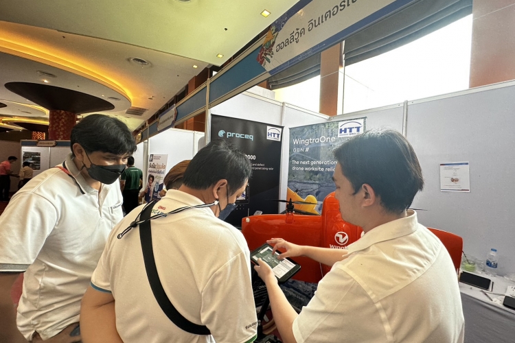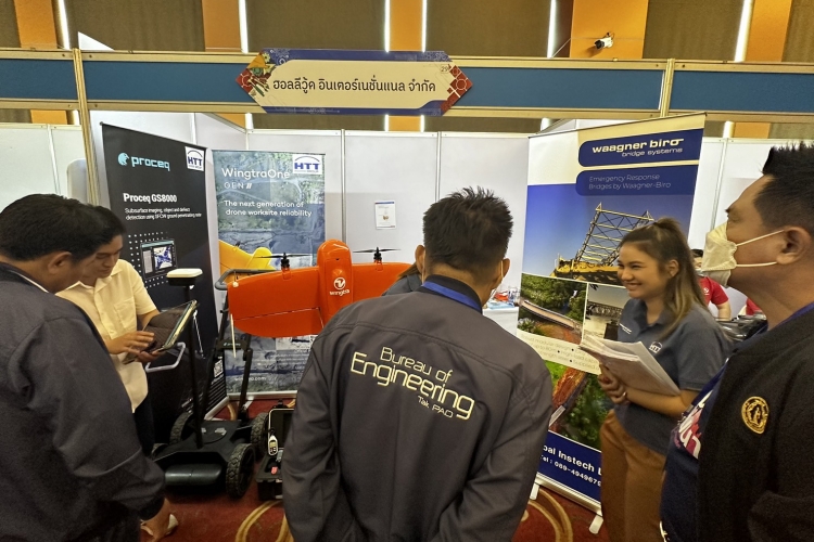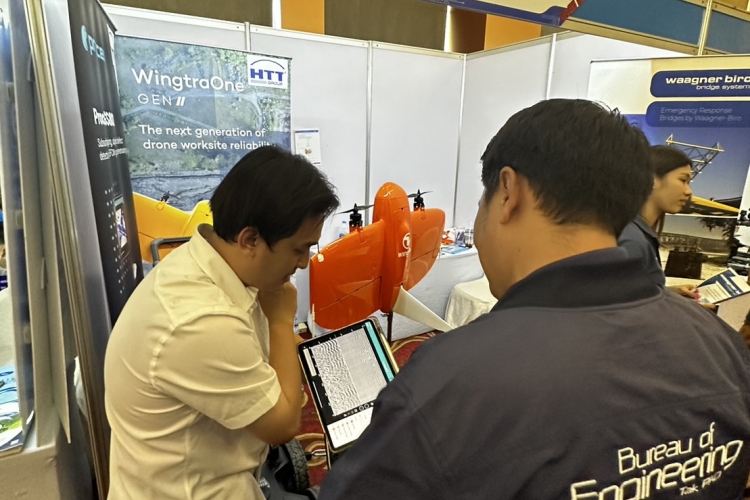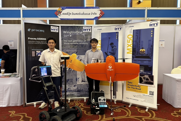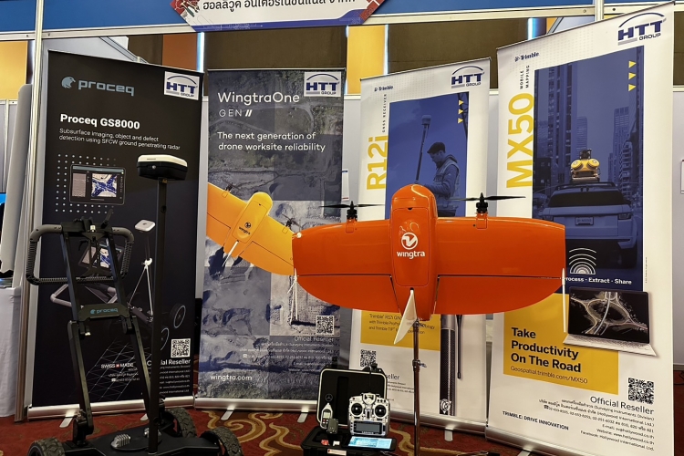 We brought many products to show in our booth, such as the Trimble R12i GNSS, the Trimble MX50 mobile mapping system, WingtraOne Gen II, and our new product, the Ground Penetrating Radar (GPR), the Proceq GS8000. The Proceq GS8000 allows users to scan underground assets such as pipelines, rebar, etc. at a maximum depth of 10 meters. Users can get a clear image of the underground in 2D and 3D as they walk and also digitize on-site findings and put them on the map and send them to CAD/GIS. The Proceq GS8000 gained a lot of interest from participants.