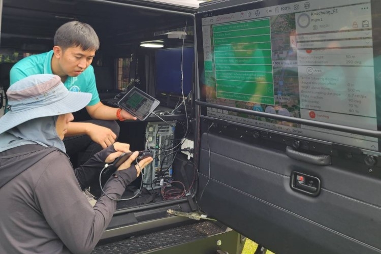 The training starts with the introduction of a functional 4WD SUV with a modified operation center inside the car. There is a powerful workstation that allows users to process the high-quality aerial images from WingtraOne Gen II, and there is also a detachable monitor that can be mounted inside and on the rack beside the car. Over the mounted monitor, there is a foldable canvas roof for users to be able to view and operate after the orthophoto is done (on-site operation).