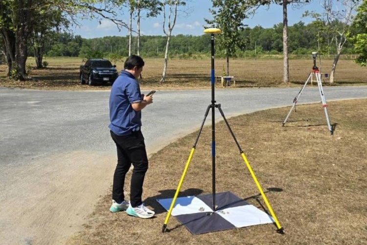 Ground Control Point (GCP) is used to adjust and fix the aerial image to make positioning more accurate. GCP must be used to be visible from the top view such as road cuts. Users can manually place the black & white target panels spread out all over the flying area for taking images. Then surveyors collect the coordinates by using a Real-Time Kinematic (RTK) GNSS receiver which is the popular method. RTK GNSS can provide high-accuracy coordinates at the centimeter level. It takes only a few minutes to collect each point. After that, we bring the GCP coordinates to process in the program.