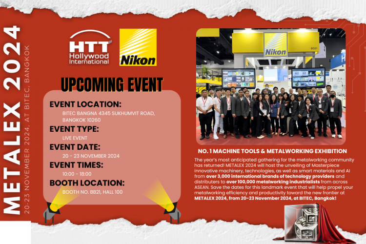 Hollywood International Ltd.'s Industrial Instruments Division cordially invites you to join us at METALEX 2024, ASEAN's wide-reaching international machinery and technology exhibition. We proudly announce our collaboration with Nikon Corporation at this prestigious event.