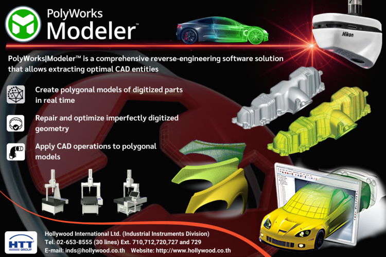 PolyWorks|Modeler™ is a comprehensive reverse-engineering software solution that allows extracting optimal CAD entities—curves, surfaces, parametric sketches, and prismatic features—from polygonal models of digitized parts to serve as the starting point in your professional CAD modeling solution. For best performance, the software should be used with LK Metrology CMM + Nikon Laser Scanner.