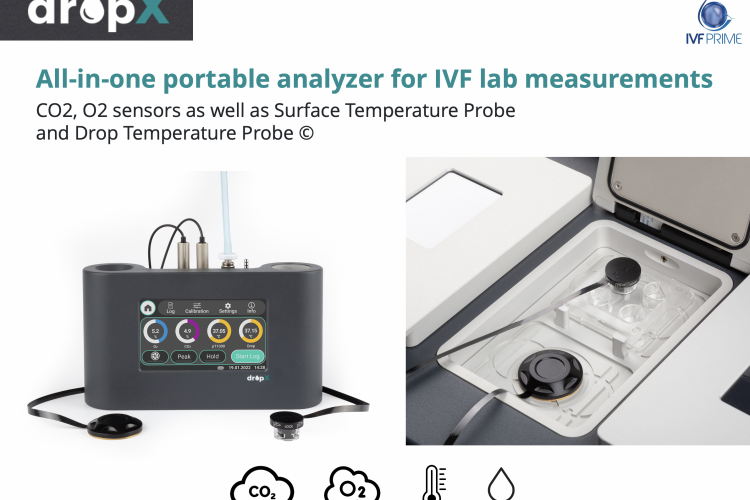 New product from IVF Prime from Turkey. An all-in-one portable analyzer for IVF lab measurement is designed for gas and temperature measurement from embryo incubator Especially, the specialized design of a drop temperature probe to measure the culture media inside the dish for accurate temperature measurement. CO2 and O2 sensors for gas measurement integrated with the all-in-one analyzer.