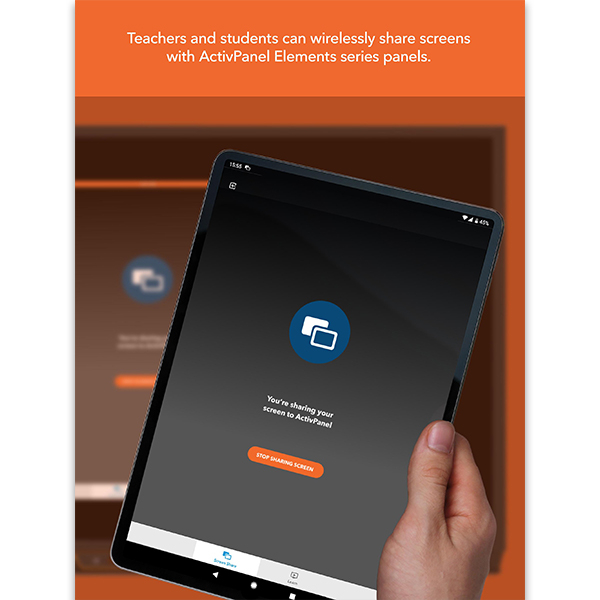 The ActivPanel Elements series controlled, multi-device mirroring lets teachers move freely and teach from anywhere in the classroom.