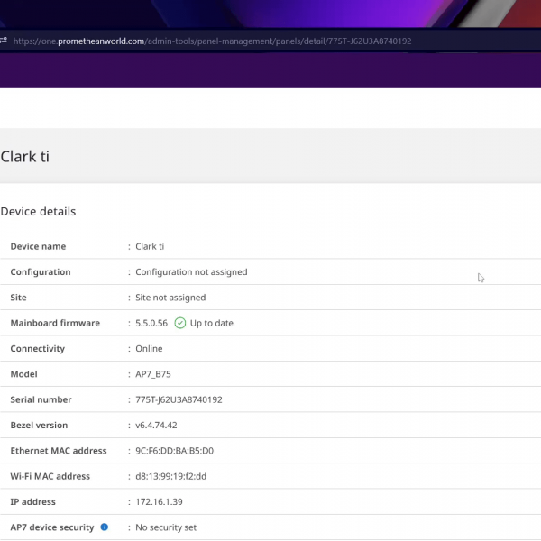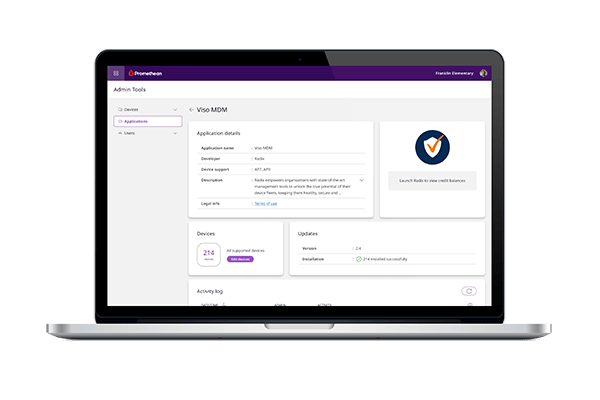 Promethean Panel Management saves time, money, and effort for school technology administrators by providing them with the ability to centrally and remotely manage all ActivPanel interactive displays within their organization. Administrators can ensure that ActivPanel are secure, and teachers have access to the latest Promethean firmware, software, and Classroom Essential apps.