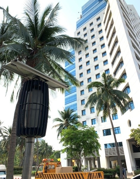 The Pamares can reduce up to 30% fine dust in the outdoor environment and up to 50% in the inside environment with only 18 watts. The power supply takes place via the normal electricity grid. The Pamares is unique in capturing fine dust in an economical and sustainable way