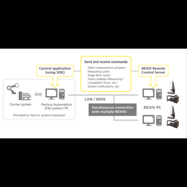 The Remote Control SDK (Software Development Kit) is a tool for developing user software modules to control and automate the NEXIV systems. Automate component carriers and measurement steps remotely or on the production floor by integrating NEXIV together with the component carrier conveyor system.