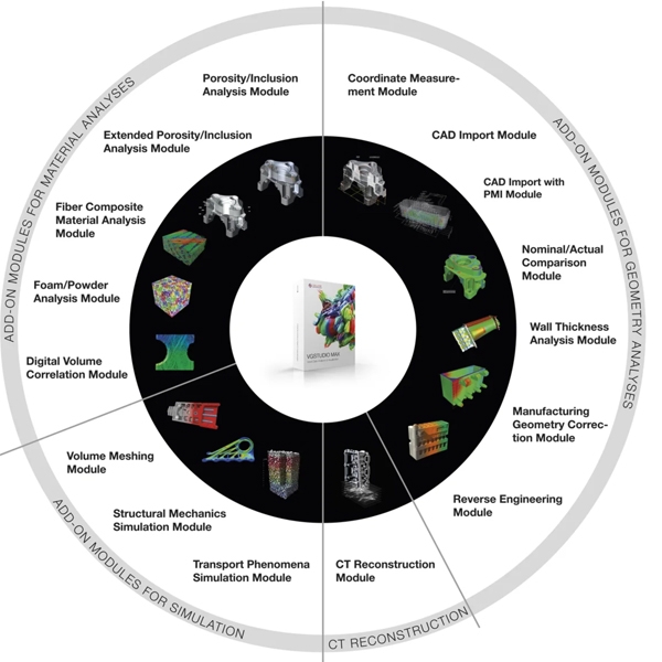 No matter what insights you need to glean from your products, VGSTUDIO MAX will get you there. The modular software suite offers the complete spectrum of Volume Graphics functionality (CT reconstruction, GD&T, material analyses, and simulation).