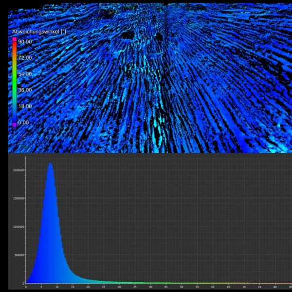 - Evaluate the deviation between the local orientation and a global reference orientation and visualize it via color coding.