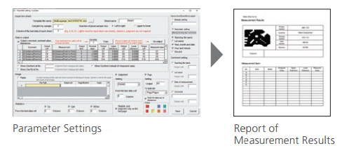 Inspection results used can be imported and automatically reflected into the measurement results. Pass/fail results and statistical data*1 are generated automatically. The function to create graphs*2 also helps visualize measurement results
