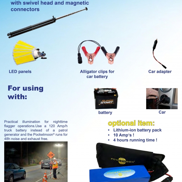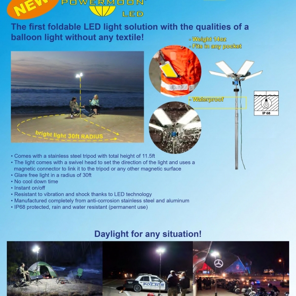ผลิตภัณฑ์ชุดโคมไฟส่องสว่าง POWERMOON จากประเทศเยอรมันเป็นโคมไฟส่องสว่างระบบไฟฟ้ากระแสตรง 12V/24V ที่ใช้หลอดไฟชนิดแอลอีดี (LED) สามารถใช้งานได้โดยตรงกับไฟฟ้ากระแสตรงจากแบตเตอรี่รถยนต์ (vehicle battery) หรือเครื่องกำเนิดไฟฟ้า (12V)