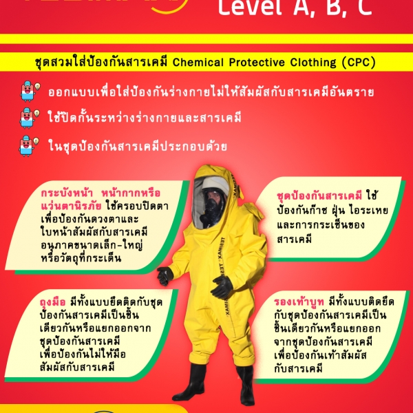 ผลิตภัณฑ์ชุดป้องกันสารเคมี Chemical Protective Clothing (CPC) ออกแบบเพื่อป้องกันไม่ให้ร่างกายสัมผัสกับสารเคมีอันตราย ในชุดประกอบด้วย