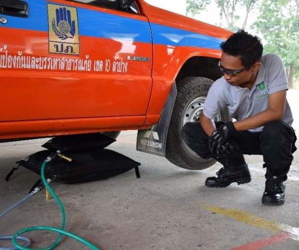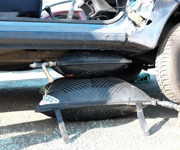 The high-pressure air pillow is designed to lift heavy objects such as vehicles and buildings. The air pillow can be inserted into narrow areas. The working pressure is 10 bars and its service pressure is 200–300 bars. Sizes range from 150 x 150 mm to 920 x 920 mm. Available from 1-65 tons. The air pillow can be stacked with two (2) loads to increase the lifting height.