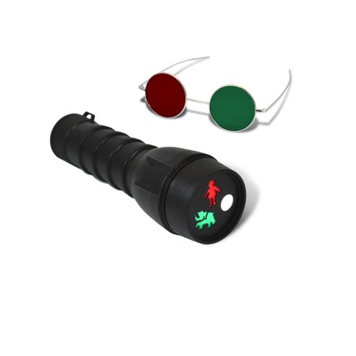 The test set consists of a high-quality, three-cell flashlight with a pair of universal spectacles together and complete instructions. 3D-cell batteries included.