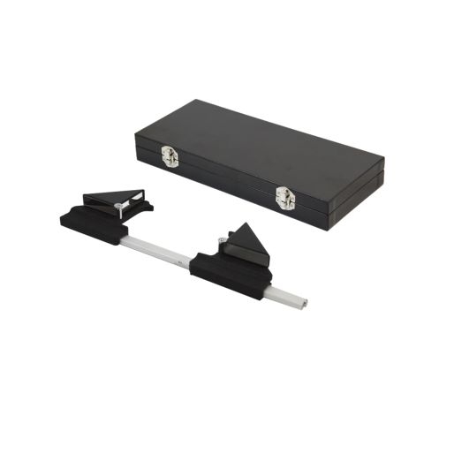 This instrument is used for precise exophthalmos measurements (e.g. exophthalmic goiter). The basis of the measurement for exophthalmos determination using the Hertel version is the outer orbital rim (orbital wall) and the apex of the cornea. The integral refraction mirrors with millimeter scales for the left-hand and right-hand measuring halves of the exophthalmometer are calibrated so that the zero mark on the scale will be located in the plane of the resting points of the supports. For exophthalmos measurements the supports are placed against the two temporal orbital walls so that the orbital rim contacts the deepest point of the supports.