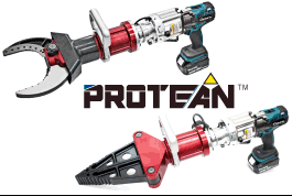 A specially designed rescue tool kit powered by battery to push hydraulic oil to the cutting unit or Spreader. Able to cut various steel frames, such as wrought iron and rebar, to help victims. In various forms, a small cutter-stretcher set and a rescue tool set with replaceable heads consist of a hydraulic drive set, large cutter head, small cutter head, rebar cutter head, spreader head, and door opener head.