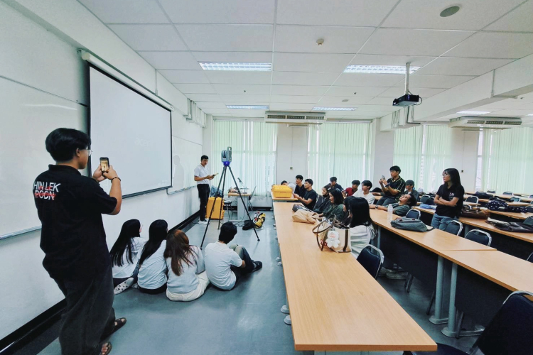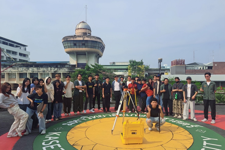 เมื่อวันที่ 18 กุมภาพันธ์ 2569 ที่ผ่านมา ทางแผนกเครื่องมือสำรวจ ได้รับเชิญจากคณะวิศวกรรมศาสตร์ สาขาวิศวกรรมสำรวจและสารสนเทศภูมิศาสตร์ มหาวิทยาลัยเกษตรศาสตร์ วิทยาเขตบางเขน กรุงเทพฯ ให้ไปบรรยายและสาธิตเกี่ยวกับการใช้งานเครื่องรับสัญญาณดาวเทียม GNSS Trimble R980 ร่วมกับเครื่องควบคุม Trimble TSC7 โดยให้นิสิตได้ทดลองรังวัดแบบ RTK (Real Time Kinematic) พร้อมกับใช้ฟังก์ชั่นต่างๆของโปรแกรม Trimble Access ในการควบคุมการทำงานภาคสนาม นอกจากนี้ทางแผนกยังได้สาธิตการใช้งานเครื่อง Trimble 3D Laser Scanner รุ่น X9 ในการสแกนเก็บค่าจุดต่างๆเพิ่มเติม โดยได้รับความสนใจจากนิสิตเป็นอย่างมาก