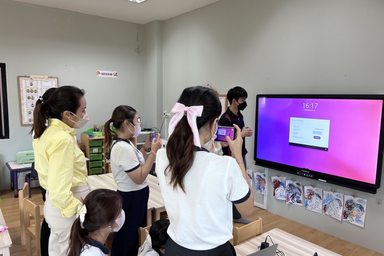 เมื่อวันที่ 10 กรกฎาคม 2566 ที่ผ่านมา แผนกเทคโนโลยีการศึกษา (Educational Technology Division)ได้จัดอบรมการใช้งานจออัจฉริยะ ActivePanel9 ให้แก่คุณครูโรงเรียนอนุบาลเซนต์แคเธอรีน เพื่อเป็นเครื่องมือการสอนของคุณครูโดยฝึกฝนการใช้งานในฟีเจอร์ต่างๆ เช่น แอปไวท์บอร์ด วงล้อสุ่มชื่อ เครื่องมือจับเวลาทำข้อสอบ แชร์หน้าจอสมาร์ทโฟนและแท็บเล็ตไปยังจออัจฉริยะและแอปอื่นๆ