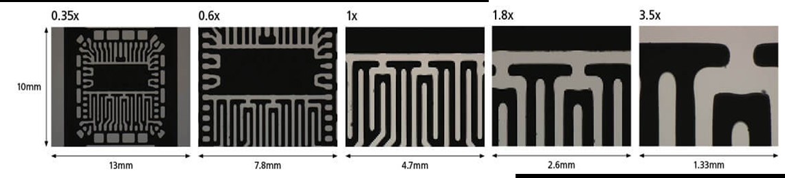 เลนส์ภาพมุมมองกว้าง มีพื้นที่มองเห็นขนาด 13 x 10 มิลลิเมตร ทำให้การค้นหาตำแหน่งและการปรับแนวแกนของชิ้นงานทำได้อย่างง่ายดาย มีอัตราส่วนกำลังขยาย 10 เท่า สามารถเลือกปรับกำลังขยายได้ 5 ระดับ เลนส์แบบ Apochromat ที่มีค่า NA สูงถึง 0.11 ทำให้การวัดด้วยภาพมีความชัดเจนและความถูกต้องสูงสุด