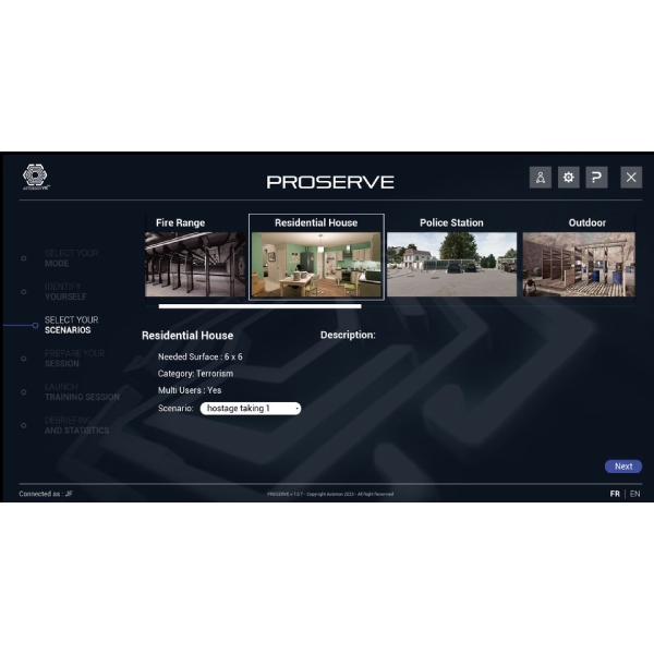 บริษัท ดีเฟ้นเทค จำกัด ขอแนะนำผลิตภัณฑ์ AsterionVR รุ่น Proserve จากประเทศฝรั่งเศส ระบบจำลองสถานการณ์เพื่อใช้ในการฝึกการเผชิญเหตุของเจ้าหน้าที่ โดยเทคโนโลยี XR ใช้งานได้ง่ายและสามารถเคลื่อนย้ายได้โดยผู้ใช้เพียงคนเดียว สามารถทำงานได้โดยไม่ต้องเชื่อมต่ออินเทอร์เน็ต มีอุปกรณ์ติดตามอาวุธสำหรับติดตั้งบนรางพิคาทินีของอาวุธจำลองเพื่อตรวจจับการเคลื่อนไหวและการยิง รวมถึงสามารถประเมินผู้ฝึกอบรมด้วยการวิเคราะห์ผ่านวีดีโอที่บันทึกไว้และปรับปรุงสถิติอย่างต่อเนื่องอีกด้วย